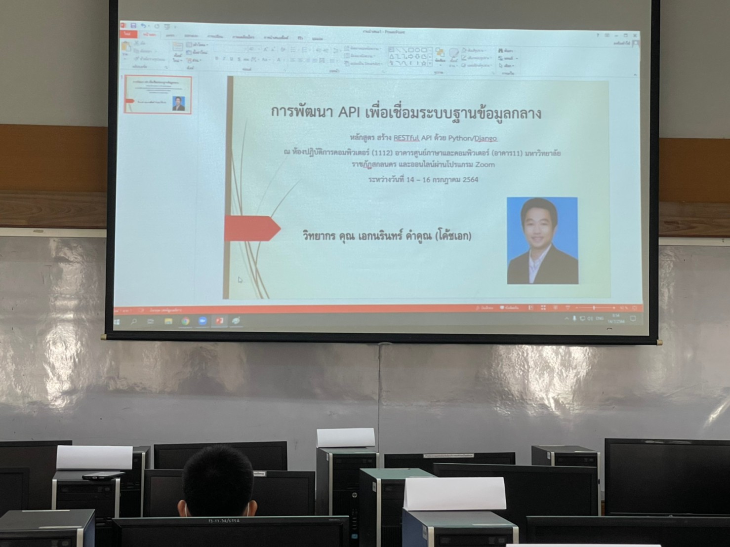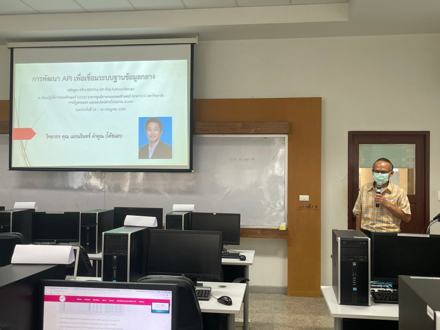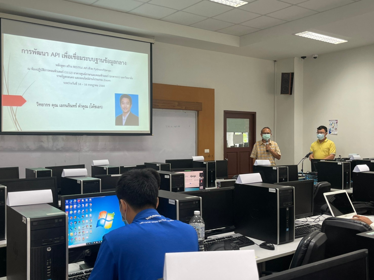 สำนักวิทยบริการและเทคโนโลยีสารสนเทศ จัดกิจกรรมอบรมเชิงปฏิบัติการ เรื่อง การพัฒนา API เพื่อเชื่อมระบบฐานข้อมูลกลาง หลักสูตร สร้าง RESTful API ด้วย Python/Django (แบบออนไลน์และออนไซต์) ระหว่างวันที่ 14 – 16 กรกฎาคม พ.ศ.2564 ณ ห้องปฏิบัติการคอมพิวเตอร์ 1112 อาคารศูนย์ภาษาและคอมพิวเตอร์ (อาคาร11) มหาวิทยาลัยราชภัฏสกลนคร และออนไลน์ผ่านโปรแกรม Zoom